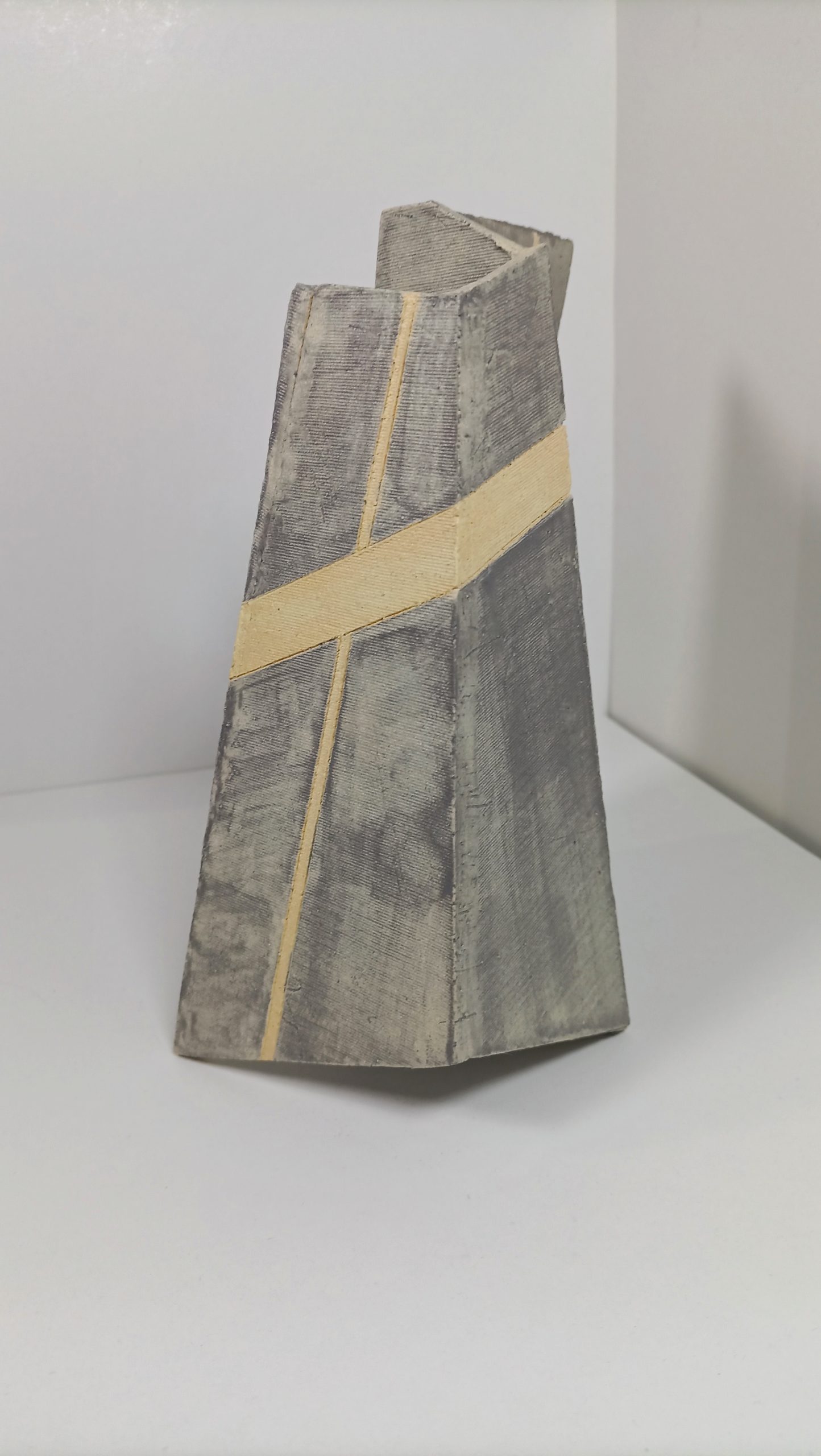 Trabaja con diversos materiales, destacando la cerámica, donde busca entender el «pulso» y la respuesta vibratoria de la línea sobre la materia.